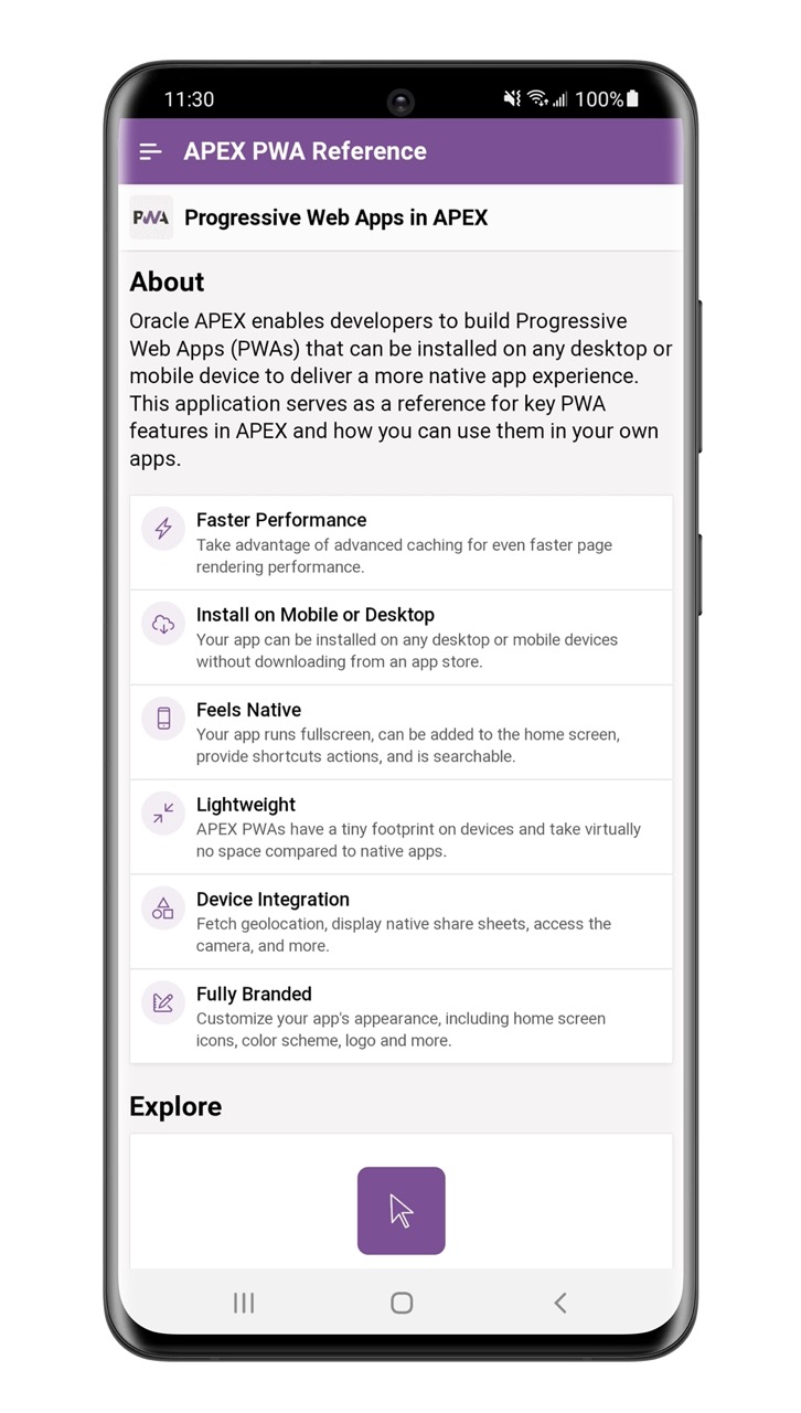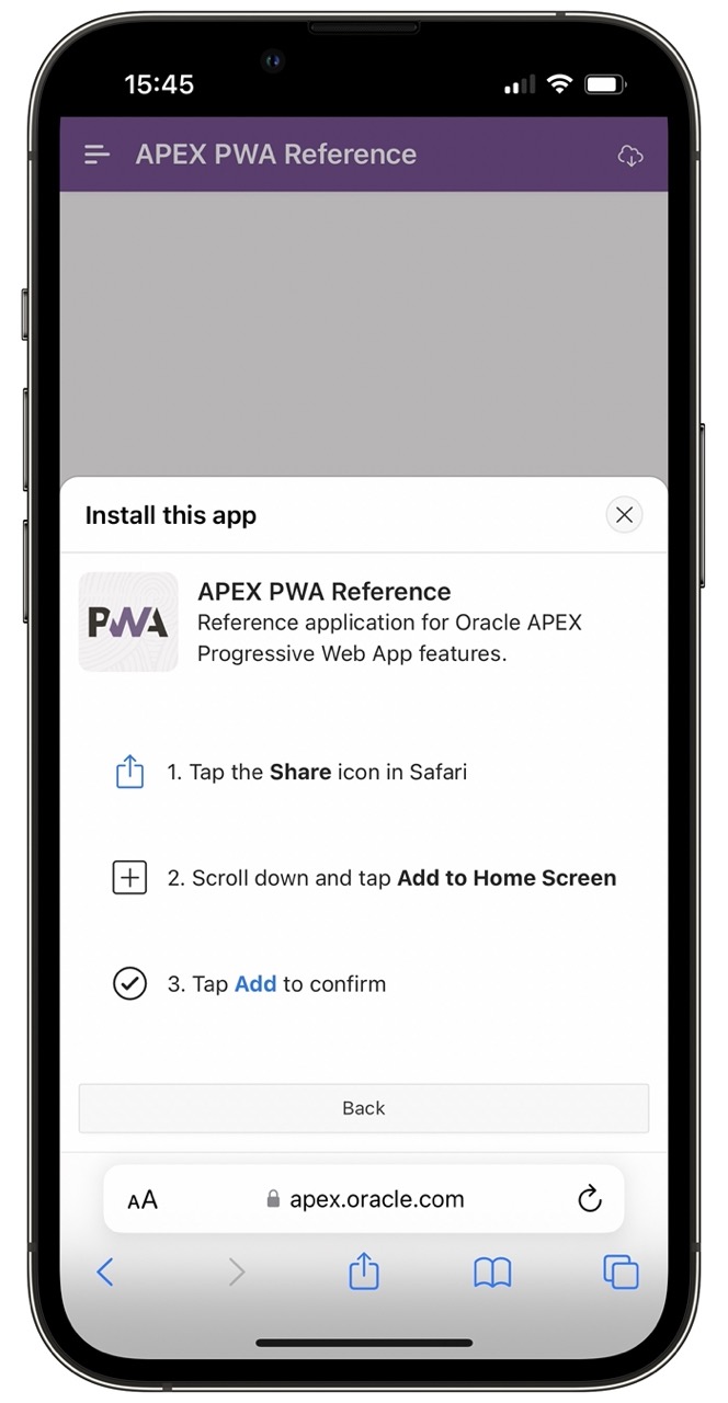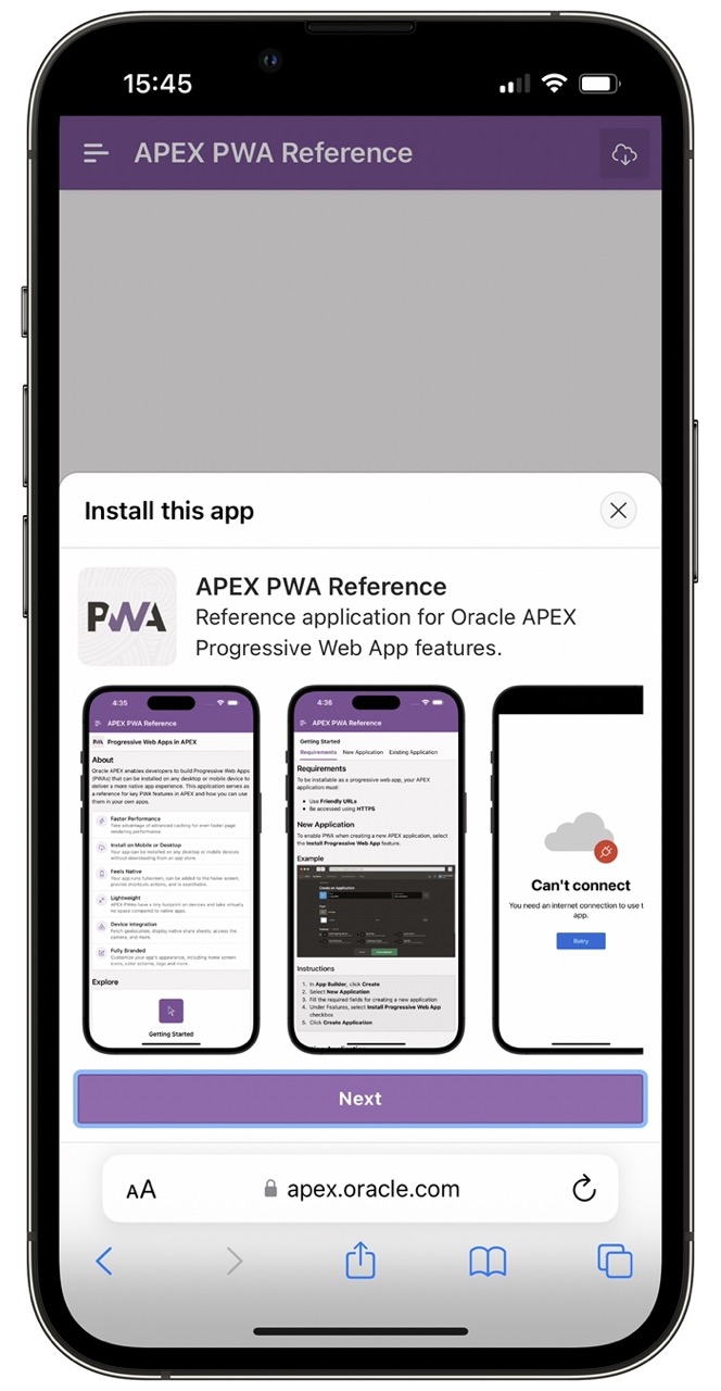 An APEX PWA is the most convenient gateway to your app: users can launch it using a home screen icon,