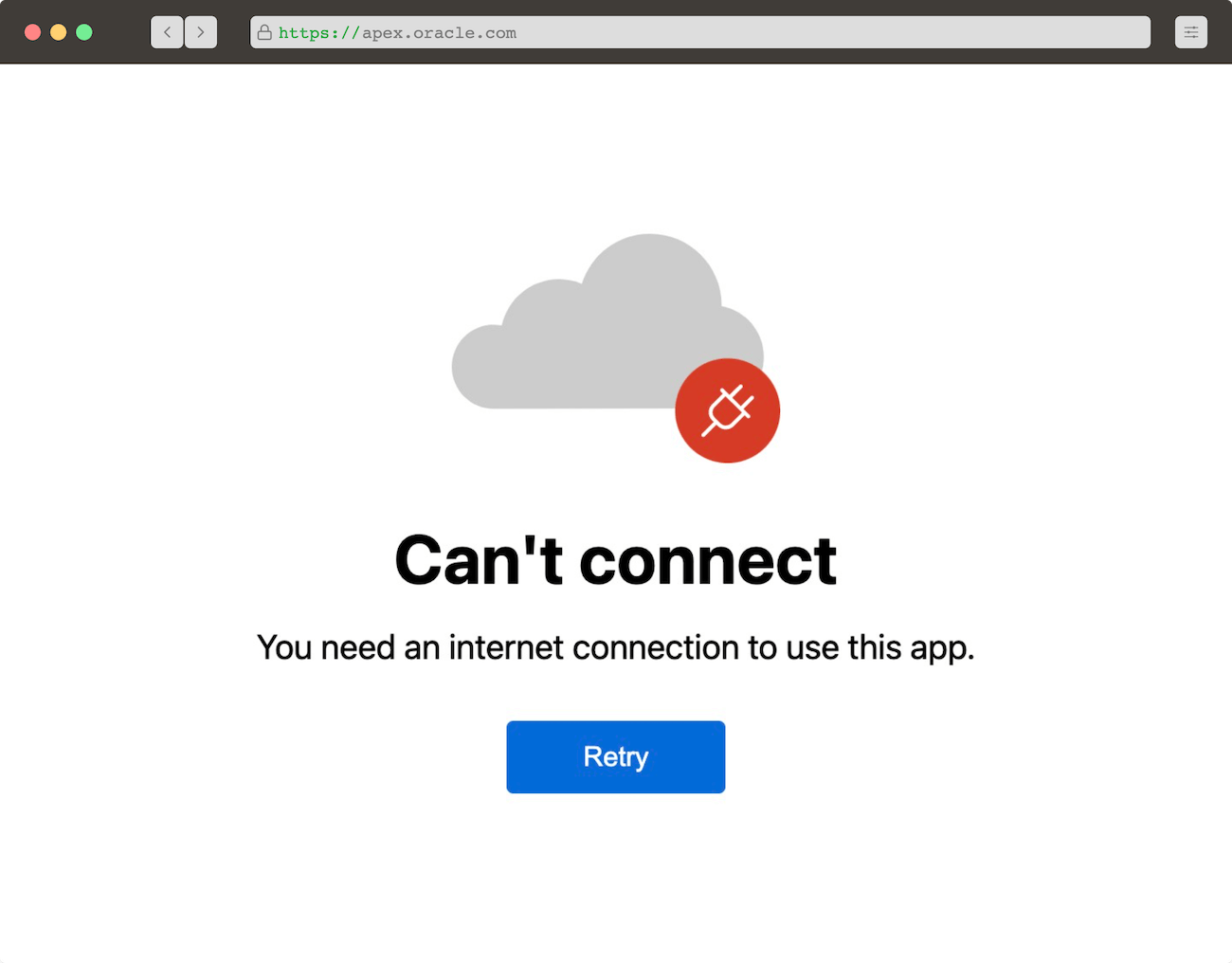 - Create messages APEX.PWA.OFFLINE.TITLE and APEX.PWA.OFFLINE.BODY